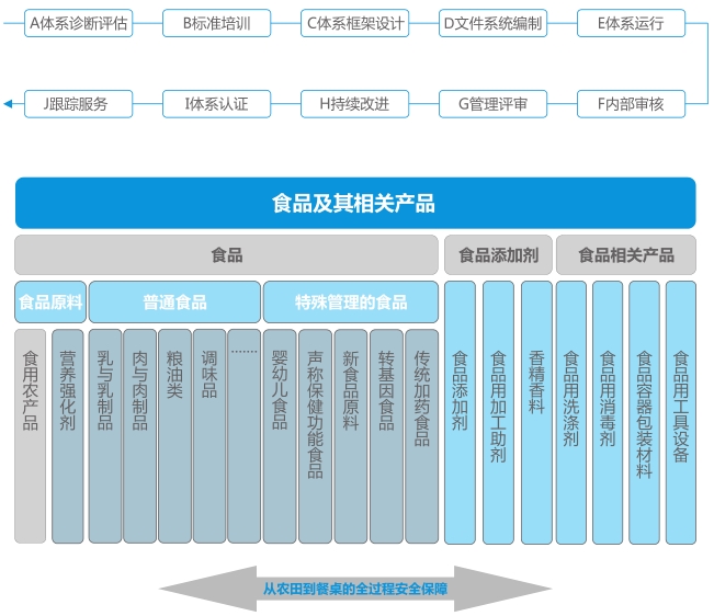 全球有许多知名的企业都建立了符合自己行业特征的食品安全管理体系,来实现食品安全管理运行。华韬强调食品安全管理体系的合规性、适用性和有效执行。根据业务流程建设及优化的理念,对企业食品安全管理业务进行系统梳理,充分理解业务特点及关键控制点,策划一个能覆盖公司所有业务活动的食品安全管理体系。